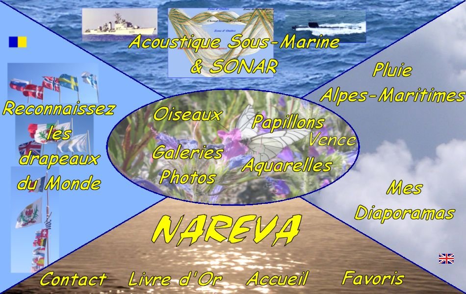 Devines qui PAPILLONNE dans mon jardin , opération LPO VENCE 2013 Galerie Photos d'oiseaux du jardin Accès à la version anglaise de ce portail Accès à la partie PAPILLONS du site : plus de 130 photos grand format de papillons des Alpes et de la Côte d'Azur triés par Familles ou par couleurs, et identifiés par famille, sous-famille, genre, et espèce Accès à la 1ère page du site Téléchargez mes diaporamas inédits de Papillons, Libellules et Aquarelles, animés et sonorisés ! Acoustique sous-marine et SONAR (principes de base, équations du SONAR, illustrations sonores, aspects historiques, questions-réponses, romans, simulateurs de sous-marins) Essayez avec DRAPODOU la Reconnaissance visuelle des Drapeaux du monde entier ! Galerie de Photos de Nature (Paysages Mer et Montagne, Fleurs de montagne, Cadrans solaires, Aquatic World, Cbx, Roses, Guépratte, Insolites, Papillons, Peintures, etc...) Galerie Tableaux de Peinture (Aquarelles ,Huiles et Gouaches d'artistes amateurs ) Mesure de la pluie tombée tous les mois à Vence, à Valbonne-Mougins-Mouans-Sartoux, à St Cézaire-sur-Siagne, et à Carros-Village (06) Mes Sites Internet Favoris Envoyez-moi votre avis sur le site par mail Donnez votre avis sur le Site, après votre visite Accueil du Site , les nouveautés du mois : balade à Cavalière en août 2011, un Pic Vert au jardin