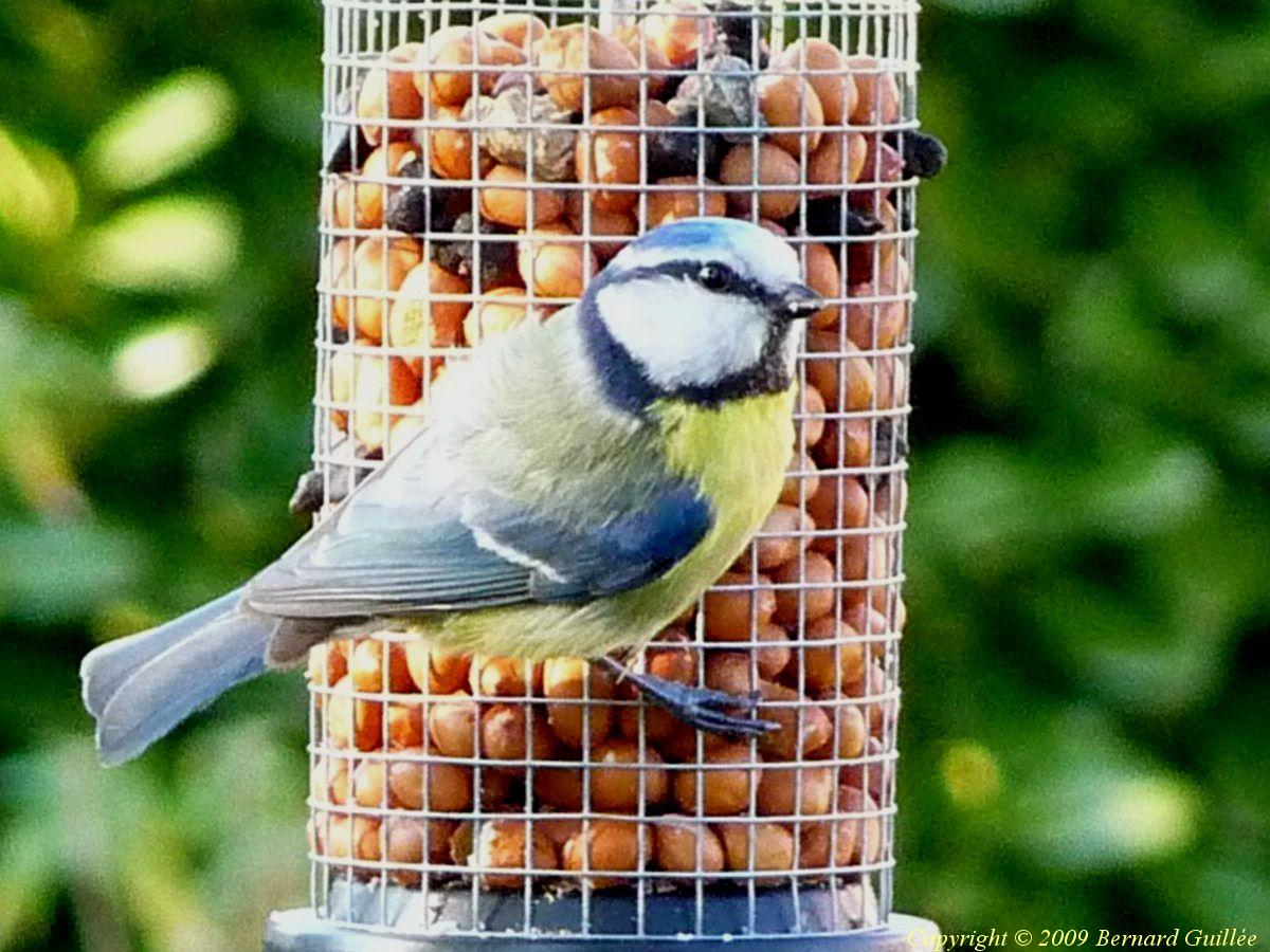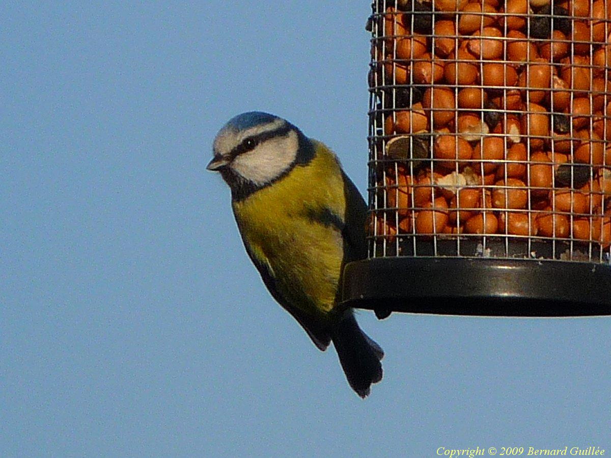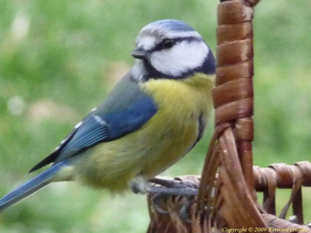 Très beau petit passereau ( de la famille des Paridés) de 11 cm de long et de 10 grammes seulement, la mésange bleue est facilement reconnaissable : ventre jaune, calotte bleue , trait sourcilier noir, front et joues blanches, dos vert bleuté et queue bleu foncé, pas de cravate noire. Très colorée, elle se rencontre assez facilement dans les parcs et les jardins. Elle est moins farouche (c'est la plus facile à approcher des mésanges, et à photographier, parfois on dirait qu'elle pose pour les photos...), et plus petite que la mésange charbonnière. Malgré sa petite taille, elle a du caractère, et sait bien défendre sa place sur les mangeoires, l'hiver.