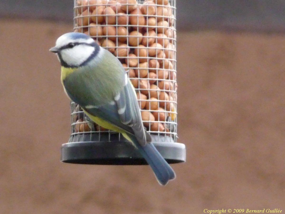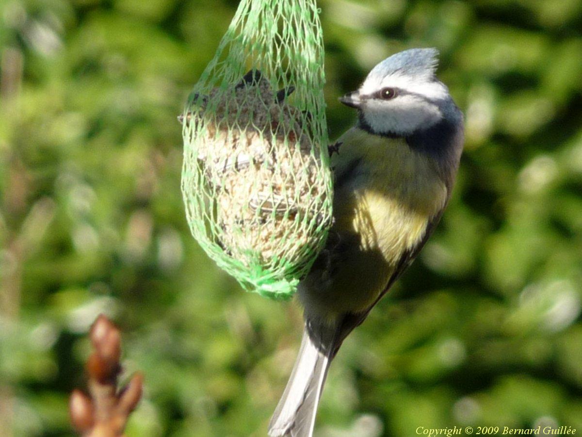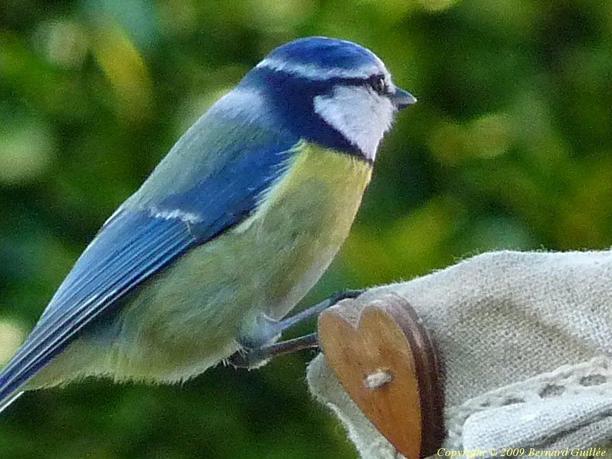 Très beau petit passereau ( de la famille des Paridés) de 11 cm de long et de 10 grammes seulement, la mésange bleue est facilement reconnaissable : ventre jaune, calotte bleue , trait sourcilier noir, front et joues blanches, dos vert bleuté et queue bleu foncé, pas de cravate noire. Très colorée, elle se rencontre assez facilement dans les parcs et les jardins. Elle est moins farouche (c'est la plus facile à approcher des mésanges, et à photographier, parfois on dirait qu'elle pose pour les photos...), et plus petite que la mésange charbonnière. Malgré sa petite taille, elle a du caractère, et sait bien défendre sa place sur les mangeoires, l'hiver.