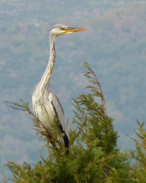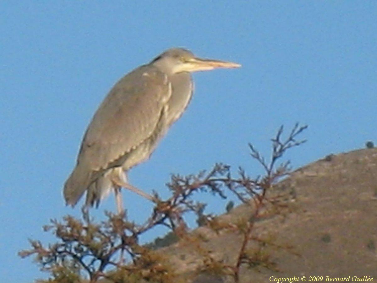 Depuis l'automne 2009, les hérons deviennent moins méfiants et fréquentent encore plus souvent les environs de Vence , on peut les photographier plus facilement, perchés sur les cimes des arbres environnants, occupés à guetter le poisson des mares de jardin, exemple en décembre 2009 :