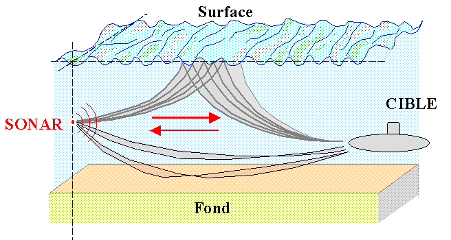 du son augmente si l'on remonte vers la surface, les rayons sont