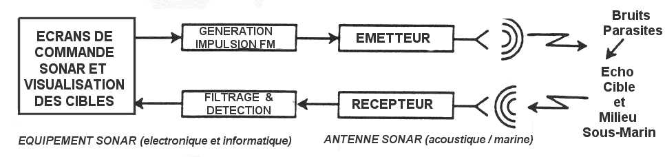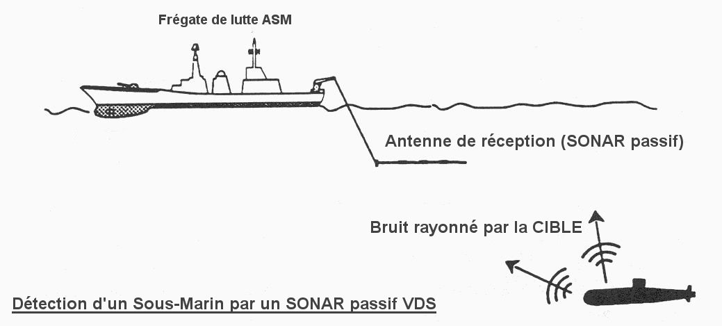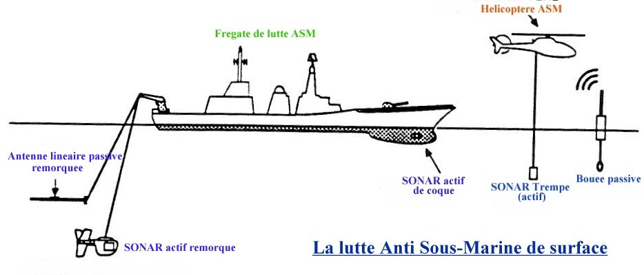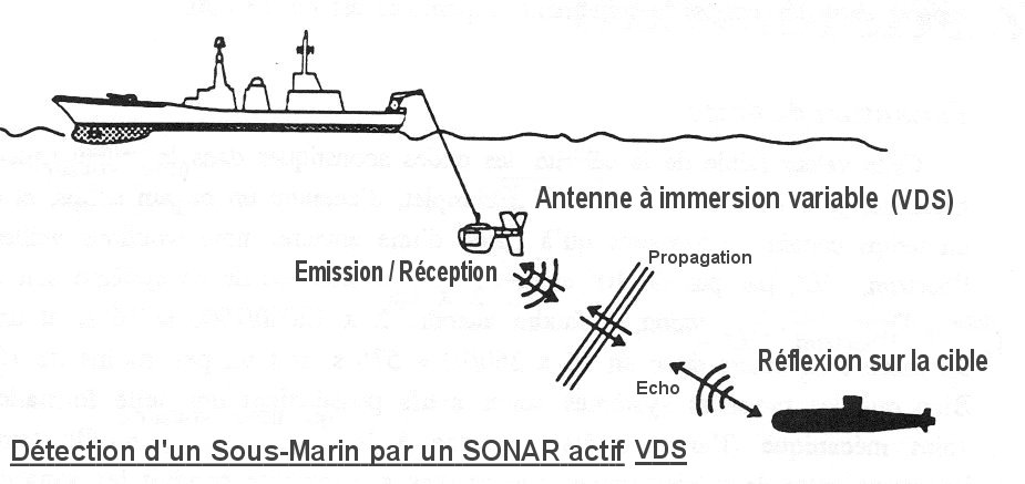 + partie acoustique trempée (transducteurs) et les systèmes d'émission (électricité de puissance en kW) et de mise à l'eau et remorquage d'antennes (et donc souvent plusieurs tonnes de matériel, au total !).